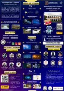 The GIKI Emerging Tech & Freelance Innovation Summit 2025 is a premier event in Pakistan that aims to bridge the gap between freelancing and emerging technologies, including Artificial Intelligence (AI), Machine Learning (ML), Blockchain, and Quantum Technology. The summit is hosted by the Ghulam Ishaq Khan Institute of Engineering Sciences & Technology (GIKI) and is set to take place from February 28 to March 2, 2025, at the GIKI campus in Topi, Pakistan.