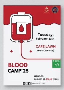 On 11th February 2025, Project Topi organized a Blood Donation Camp in collaboration with the Department of Student Affairs. The initiative encouraged students and faculty to donate blood, contributing directly to saving lives and supporting healthcare facilities.