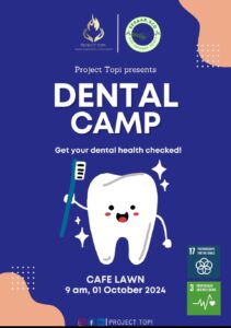 Project Topi, under the Department of Student Affairs, organized a Dental Camp on 1st October 2024 at GIKI. The camp provided free dental checkups and oral hygiene awareness sessions for students, faculty, and staff, ensuring access to preventive care and promoting healthy lifestyle habits.