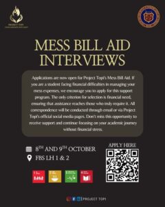 The Mess Bill Aid Program, initiated under Project Topi at GIK Institute, provides crucial financial support to students facing difficulties in paying their monthly dining hall expenses. Recognizing that food security is essential for academic success and overall well-being, the program ensures that no student is deprived of daily nutritious meals due to financial constraints. Through confidential assessment and donor-backed assistance, Project Topi helps ease the burden on deserving students, enabling them to focus on their studies without the stress of unmet basic needs. This initiative reflects GIKI’s commitment to inclusivity, compassion, and the principles of SDG 2 by promoting equitable access to safe and sufficient food within the campus community.